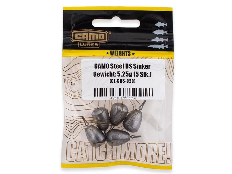 De Camo Steel Drop Shot Sinker zijn dropshotgewichten van staal. Het harde materiaal geeft zeer goede feedback over de bodemgesteldheid, zodat u de bodem perfect kunt “voelen”.