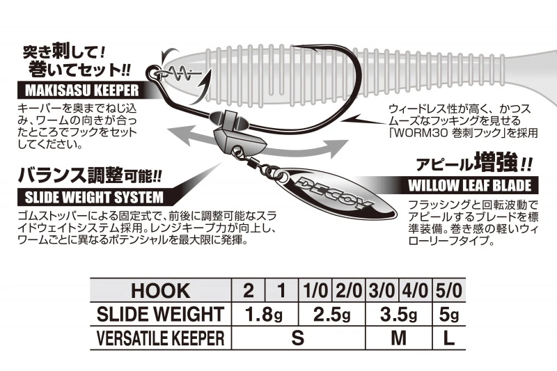 De Decoy Worm230G Makisasu Blade Gold is een offset haak met verwijderbaar gewicht en wilgenlepel. Pimp je rubberen aas om roofdieren te verleiden tot een aanval!